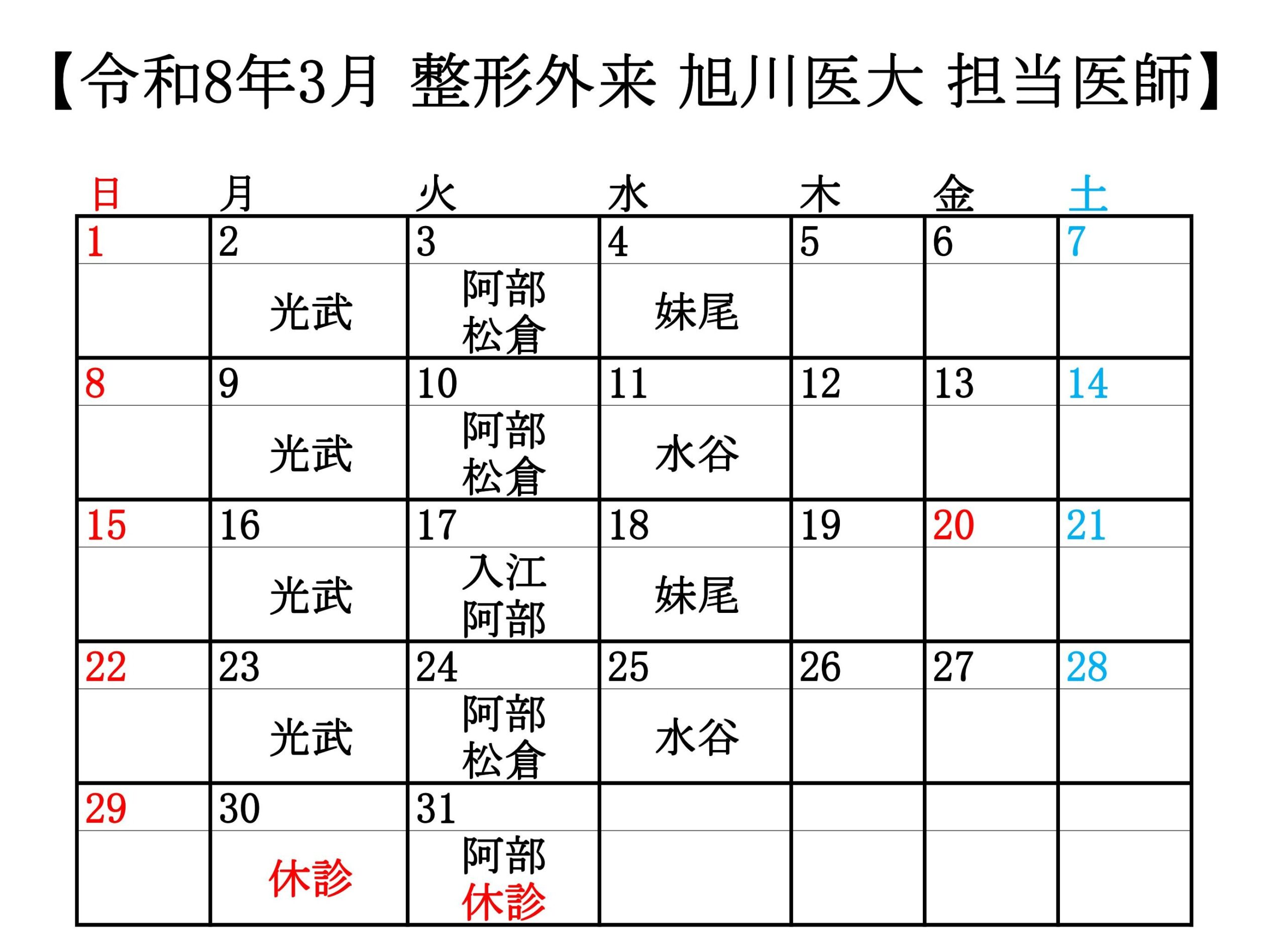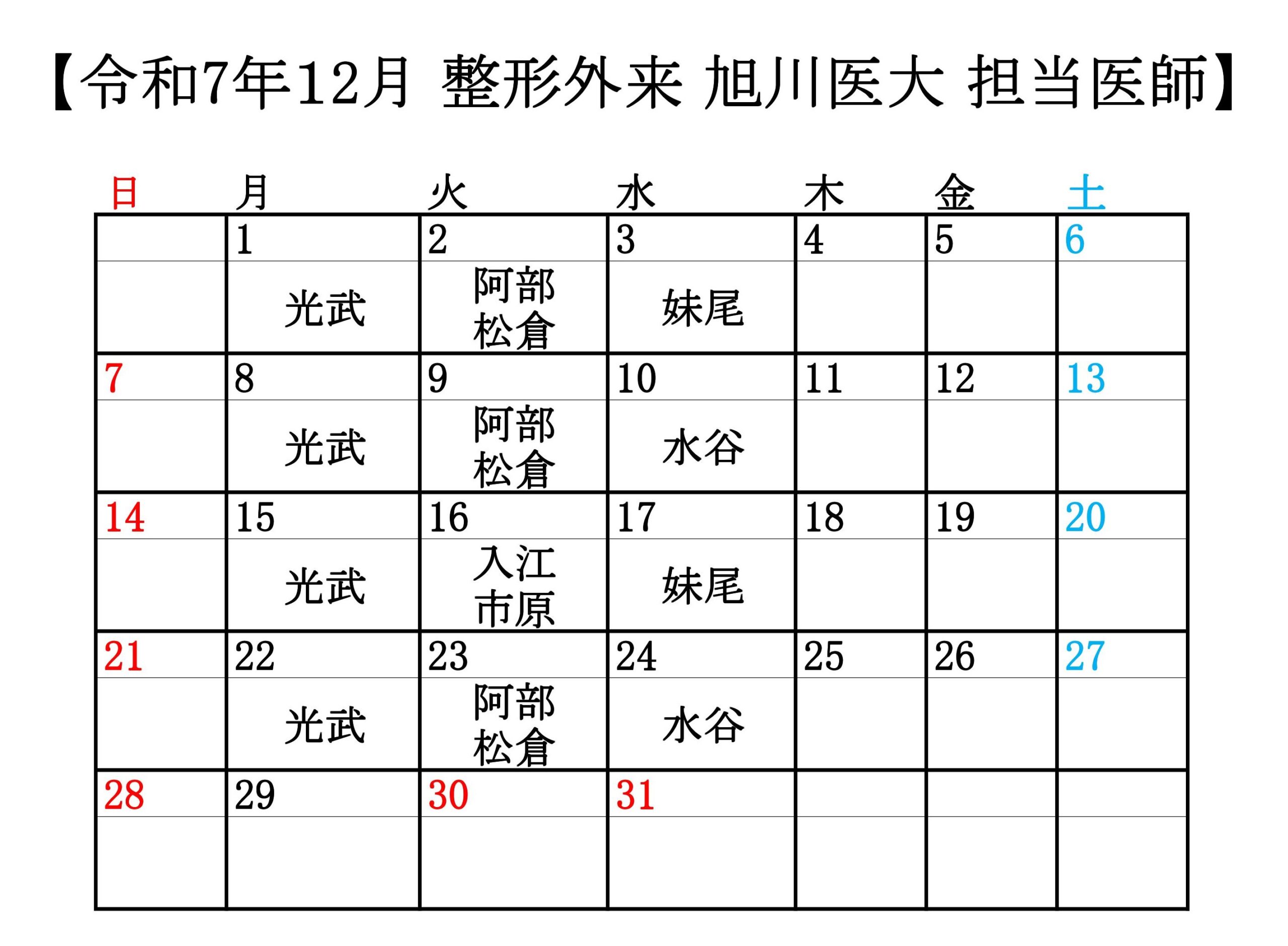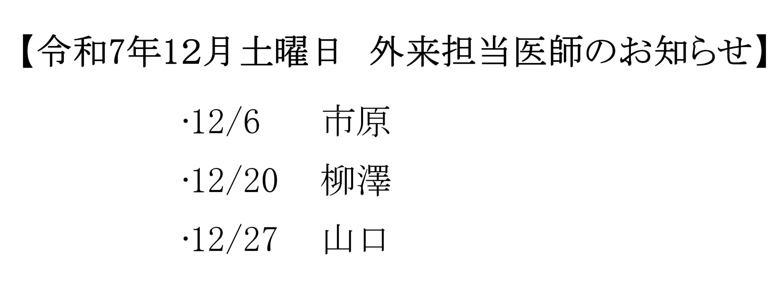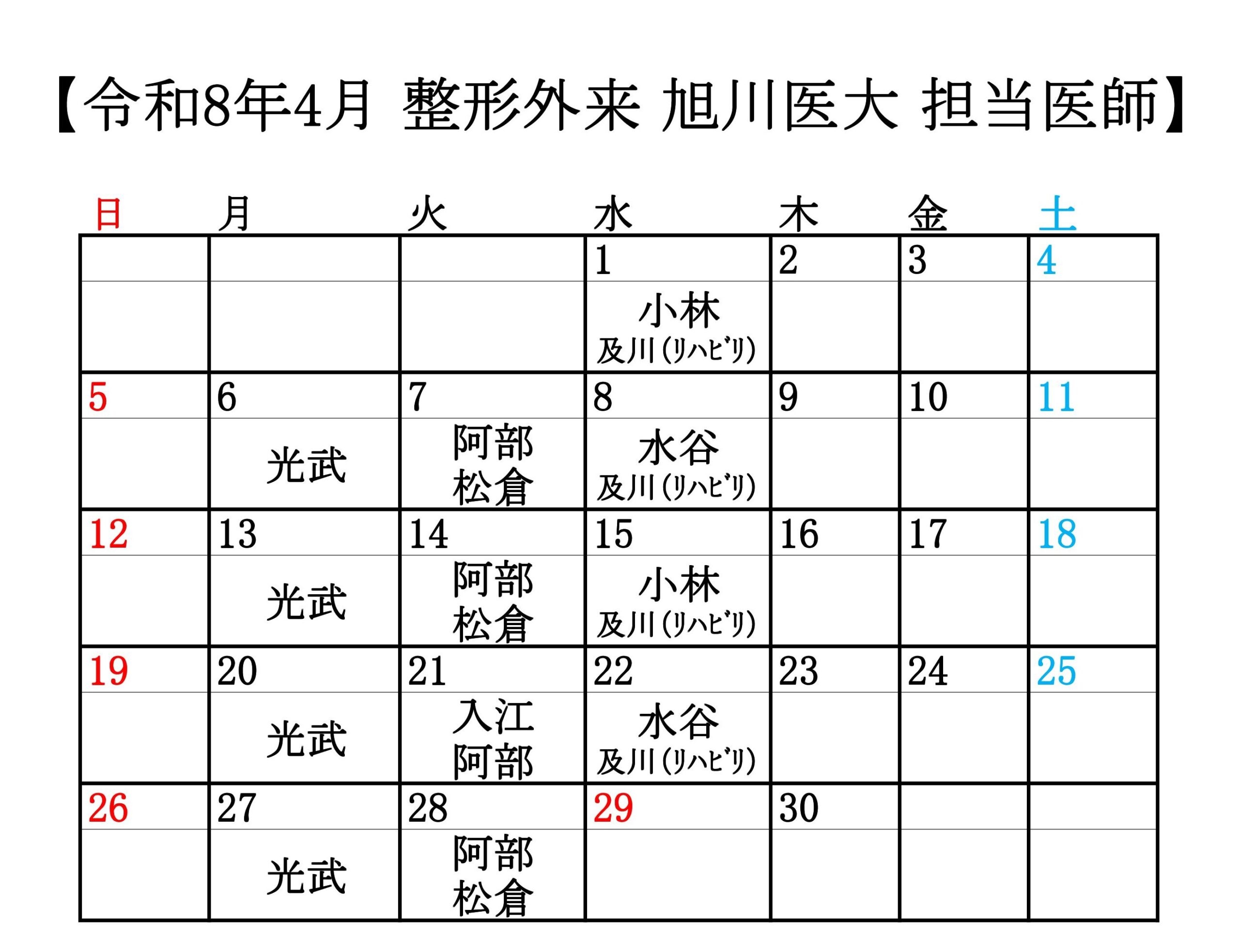 令和7年4月1日より外来担当スケジュールが下記の通り