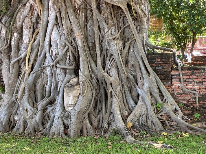 アユタヤ遺跡では、木の根に包まれた仏像の顔が特に忘れられません。自然と歴史が溶け合ったような神秘的な空間に、しばらく立ち止まって見入ってしまいました。